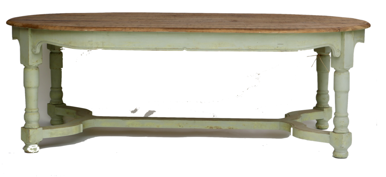 Drayton Oval Wood Table with Green Base